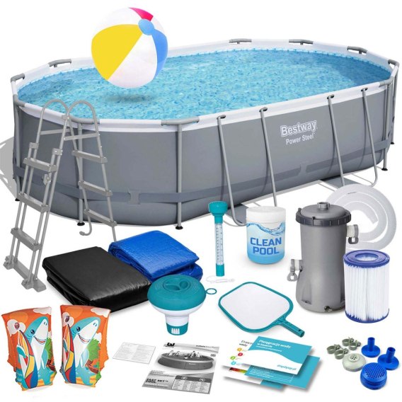 • Basen ogrodowy stelażowy 488 x 305 x 107 cm 18w1 Bestway 56448