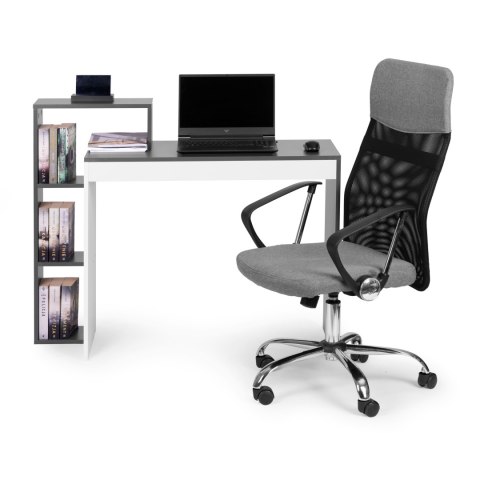 Biurko komputerowe biurowe biało-szare stół + regał 4 półki