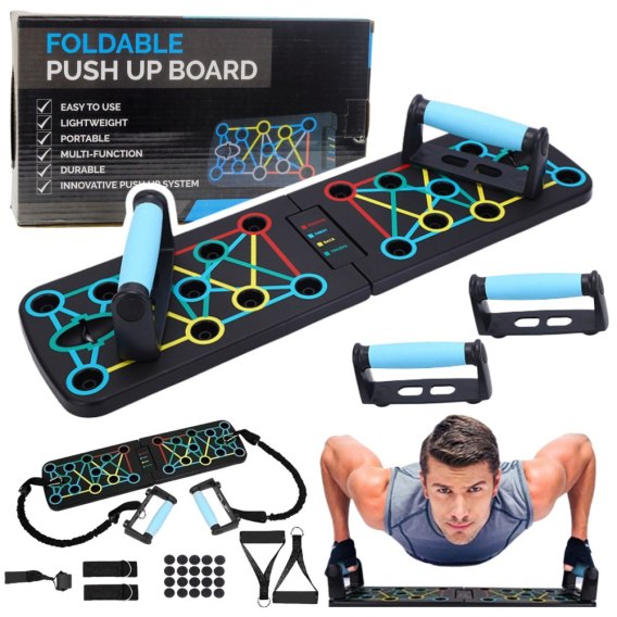 • Deska Do Pompek Ćwiczeń 15w1 Składana Gumy Oporowe Z Uchwytami