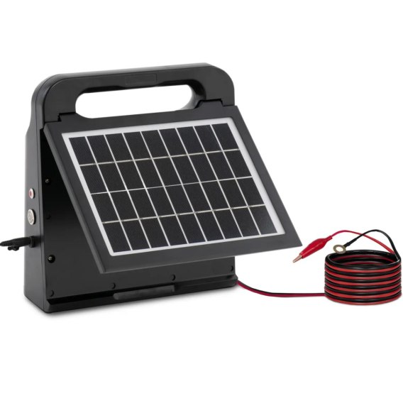 Elektryzator do pastucha elektrycznego marki Wiesenfield pozwoli bezpiecznie hodować na łące zwierzęta, takie jak konie, krowy, kozy czy owce. Model emituje 0,3 J na impuls na ogrodzeniu o długości 5 km i dlatego niezawodnie odstrasza ludzi. Czas trwania impulsów jest tak dobrany, aby zwierzęta cofały się przy dotknięciu, ale nie powodowały obrażeń. Elektryzator działa w sposób zrównoważony i energooszczędny, wykorzystując energię słoneczną wytwarzaną przez dołączony panel o wymiarach 17 x 27 cm. Poręczny uchwyt do przenoszenia ułatwia transport urządzenia do miejsca użytkowania. Instalacja jest szybka i łatwa oraz nie wymaga użycia specjalnych narzędzi. Kabel uziemiający i przyłączeniowy, za pomocą którego zasilane jest ogrodzenie elektryczne, wchodzą w zakres dostawy. Dzięki zintegrowanemu akumulatorowi 6 V o żywotności wynoszącej dwa lata i obudowie z tworzywa sztucznego odpornej na promieniowanie UV, elektryzator nie wymaga częstego serwisowania.