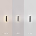 Seria kinkietów Wow to nowoczesne oświetlenie elewacyjne, które łączy estetykę z praktyczną funkcjonalnością. Wykonane z połączenia metalu i akrylu, oferują trzy barwy światła do wyboru - ciepłą, neutralną i zimną. Klasyczny, czarny kolor i smukły, podłużny kształt sprawiają, że doskonale komponują się z każdą fasadą. Zwiększona odporność na warunki zewnętrzne pozwala na montaż zarówno przy drzwiach wejściowych, jak i wzdłuż ścieżek czy tarasów. Montaż jest prosty i szybki - kinkiety gotowe są do instalacji bez potrzeby dodatkowych modyfikacji.