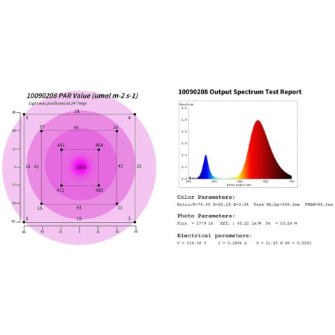 - - Wydajność - PPFD 504 µmol/m2/s idealne dla mniejszych roślin, ziół i warzyw,