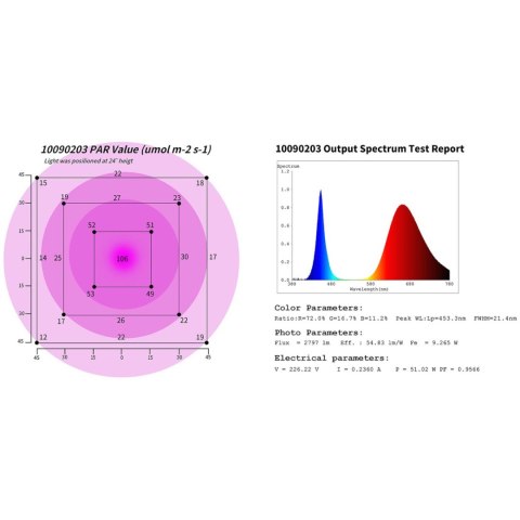 - - Wydajność - PPFD 438 µmol/m2/s idealne dla mniejszych roślin, ziół i warzyw,