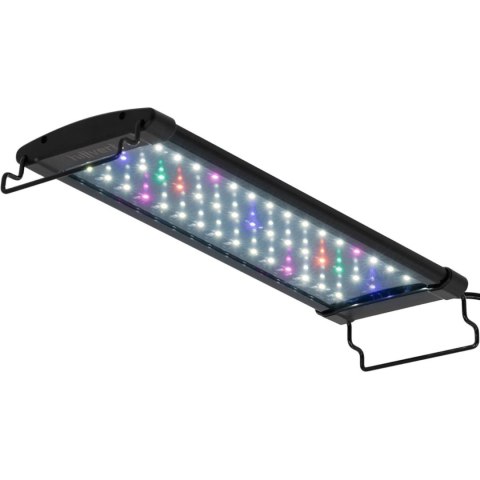Lampa do akwarium marki Hillvert stworzona została z myślą o zapewnieniu organizmom warunków zbliżonych do naturalnych, niezależnie czy żyją w wodach morskich czy słodkich. Urządzenie sprzyja zdrowemu wzrostowi roślin wodnych. Działa w dwóch trybach: bakteriobójczym i dekoracyjnym (nocnym), podkreślającym blask rybich łusek. Lampa wyposażona została w 45 diod LED. Mocowana jest do akwarium za pomocą dwóch wsporników, które można dopasować do jego wielkości. Wymiar lampy to 36 x 12 x 6 cm. Aluminiowa obudowa komponuje się z każdym otoczeniem i jest łatwa w utrzymaniu czystości. Ze względu na klasę ochrony IP20 nie powinna wchodzić w kontakt z wodą. Moc lampy wynosi zaledwie 12 W. Pełne spektrum diod LED w różnych kolorach umożliwia prawidłowy wzrost roślin i jest dostosowane do potrzeb ryb. Drugi tryb wykorzystuje tylko niebieskie światło, podkreślające fluorescencyjne kolory ryb.