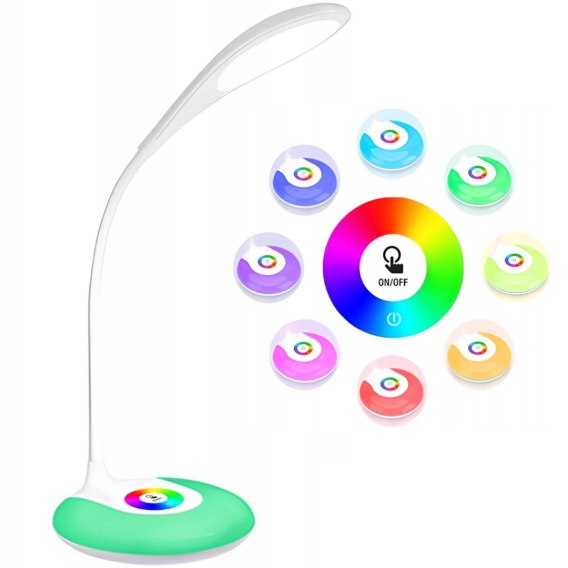 Lampka biurkowa LED RGB z dotykowym sterowaniem to nowoczesne i energooszczędne oświetlenie idealne do nauki, pracy przy komputerze oraz czytania. Dzięki 256 kolorom podświetlenia podstawy i trzem poziomom jasności światła białego, umożliwia dopasowanie oświetlenia do każdej sytuacji. Elastyczne ramię pozwala ustawić lampkę pod dowolnym kątem, a wbudowany akumulator zapewnia do 3 godzin pracy bez zasilania.