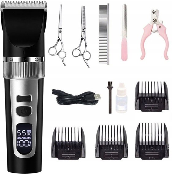 Maszynka bezprzewodowa do strzyżenia psów zwierząt LCD 9 W 4 nasadki