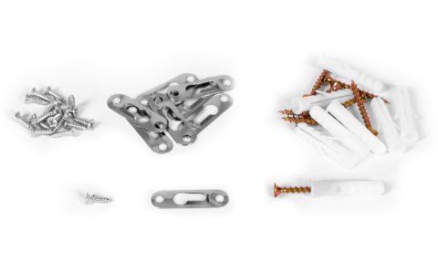 W zestawie znajdują się specjalne metalowe kątowniki oraz wkręty, którymi możesz przymocować regał do ściany.