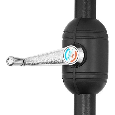 Parasol marki Uniprodo sprawdzi się w każdym ogrodzie czy tarasie. Zapewnia komfortowy odpoczynek na świeżym powietrzu. Duża czasza o wymiarach 200 x 300 cm stanowi ochronę przed upałem. Współczynnik ochrony UPF 50+ chroni przed 98% promieni UV. Ręczna korba pozwala szybko i sprawnie otworzyć i zamknąć parasol. Czasza jest odchylana. Jej pokrycie wykonane zostało z poliestru o gęstości 180 g/m2, jest odporne na rozciągania i rozdarcia oraz na działanie promieni UV a także łatwe w czyszczeniu. Słupek parasola o średnicy 38 mm wykonano z lekkiego i trwałego aluminium, żebra natomiast ze stali. Specjalny wywietrznik na szczycie zapewnia lepszą cyrkulację powietrza i chroni przed przewróceniem podczas wietrznych dni. Parasol można ustawić na specjalnej podstawie (brak w komplecie) lub włożyć go do otworu w stole.