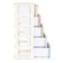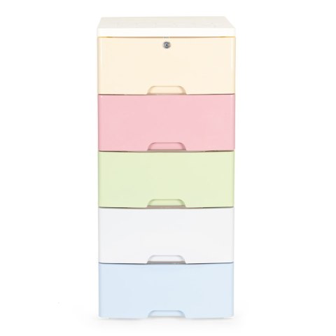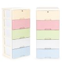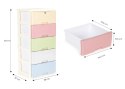 Regał składa się z pięciu kolorowych szuflad, ze specjalnie wyprofilowanym uchwytem na froncie, co ułatwi Ci ich wsuwanie i wysuwanie.