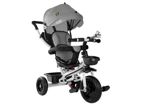 W konstrukcji rowerka znajduje się pojemny kosz na zakupy lub skarby dziecka, umieszczony pomiędzy tylnymi kołami, a także mała saszetka na suwak znajdująca się na prowadnicy dla rodziców — detale te ułatwiają całodniowe przejażdżki i wycieczki. Dzięki miękkiej piankowej barierce Twoje dziecko będzie w pełni bezpieczne podczas spacerów i nie wypadnie z siodełka. Dodatkowo jest możliwość obrotu siedziska dziecka w swoja stronę i czuwania nad jego bezpieczeństwem. Na kierownicy znajduje się również dzwonek trąbka, którym Twoje dziecko śmiało będzie mogło komunikować innym o tym, że jedzie. Trójkołowy rowerek dla dzieci przeznaczony jest dla wszystkich maluszków od 6 do 60 miesiąca życia, których waga nie przekracza 25 kg. Wykonano go z trwałego i odpornego tworzywa, które gwarantuje długą żywotność i komfort użytkowania. Rowerek posiada miękkie koła EVA. Trójkołowiec dla dzieci zapakowany jest w oryginalny karton, wewnątrz którego znajdują się śrubki, narzędzia i instrukcja ułatwiająca samodzielny montaż.