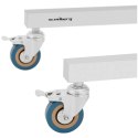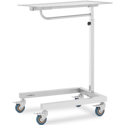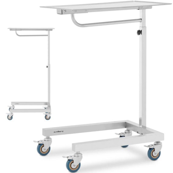 Stolik instrumentalny marki Steinberg Systems pozwala wygodnie położyć narzędzia i przybory, żeby mieć je w zasięgu ręki. Dzięki kółkom mebel można wygodnie przestawić, więc idealnie nadaje się do różnych placówek badawczych. Taca stolika zabiegowego ma wymiary 60 x 40 cm i regulowaną wysokość, którą można ustawić co 5 cm w zakresie 84,5-120 cm zgodnie z własnymi upodobaniami. Dzięki otwartej konstrukcji stolik łatwo można ustawić przy łóżku. Stolik laboratoryjny wyposażono w lekkobieżne kółka o średnicy 75 mm. Pozwala to na szybki i bezproblemowy transport brudnych narzędzi w celu ich wyczyszczenia. Kółka można zablokować, co zapewnia bezpieczny postój.