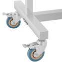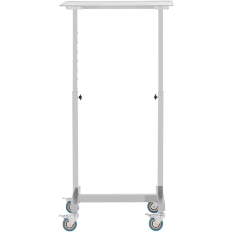 Stolik instrumentalny marki Steinberg Systems pozwala wygodnie położyć narzędzia i przybory, żeby mieć je w zasięgu ręki. Dzięki kółkom mebel można wygodnie przestawić, więc idealnie nadaje się do różnych placówek badawczych. Taca stolika zabiegowego ma wymiary 60 x 40 cm i regulowaną wysokość, którą można ustawić co 5 cm w zakresie 84,5-120 cm zgodnie z własnymi upodobaniami. Stolik laboratoryjny wyposażono w lekkobieżne kółka o średnicy 75 mm. Pozwala to na szybki i bezproblemowy transport brudnych narzędzi w celu ich wyczyszczenia. Kółka można zablokować, co zapewnia bezpieczny postój.