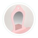 Głównym elementem toaletki jest duże, ozdobne lustro, które dodaje uroku oraz pozwala małej dziewczynce obserwować swoje stylizacje i zabawy. Lustro ma pięknie zaprojektowany kształt, aby nadać toaletce elegancki, a zarazem dziewczęcy wygląd.